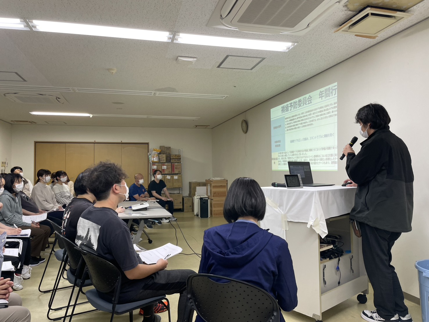 2026年4月17日(金) / 最終更新日時 : 2026年4月17日(金) tachibana1721 活動報告 職員全体研修【R8.4.17】 令和8年度 事業活動計画発表(職員全体研修)を実施しました 各改善委員会の委員長より令和8年度の事業活動計画の発表を行いました。 衛生、感染症対策、レクリエーション、生産性向上など、それぞれの分野における重点取り組みや目標が共有され、全職員で方向性を確認する機会となりました。 今年度は「やってみよう」の姿勢を大切に、現場からの改善と挑戦を積み重ね、より質の高いサービス提供につなげてまいります。